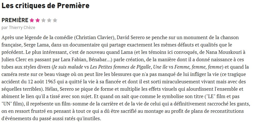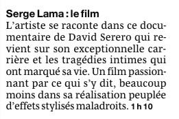 Quelques critiques de la presse au sujet du film Serge Lama de David serero