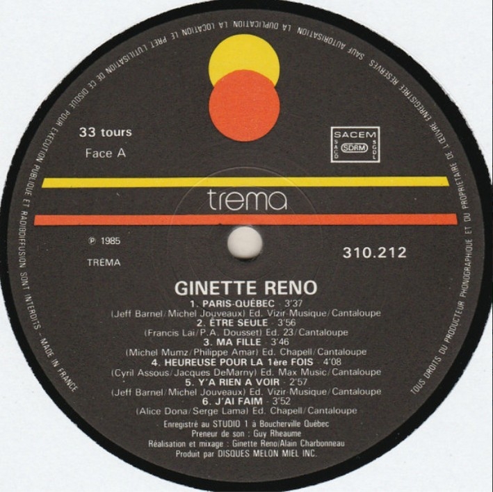 Sur son album, sorti en 1985, Ginette Reno interpête la chanson "j'ai faim" écrite par Serge Lama et Alice Dona.