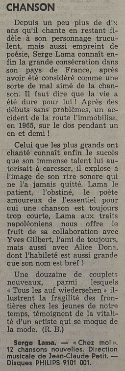 Dans ce journal, présenté par Léon Zitrone, une interview est réalisée au domicile de Serge Lama avant son passage à l’Olympia.