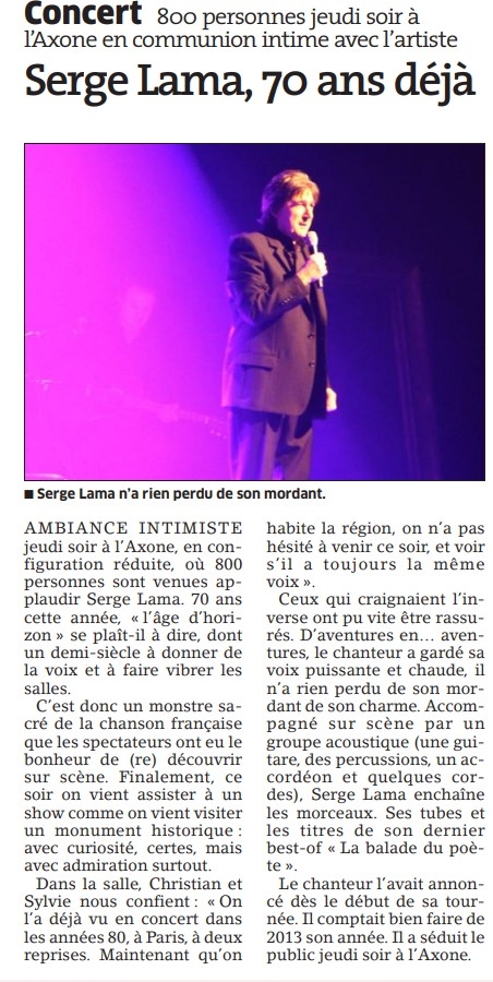 14:50 Publié dans 2013, La presse des années 2010, Serge Lama en concert | Lien permanent | Commentaires (0)