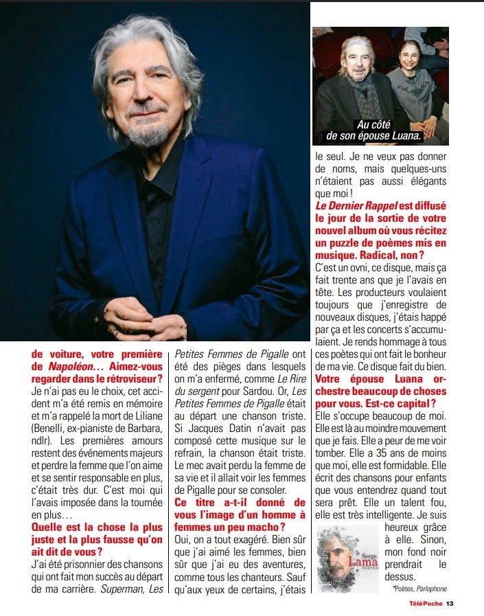 Dans le court programme Basique, Serge lama présente son album de poésie "Poètes", la veille de sa sortie.