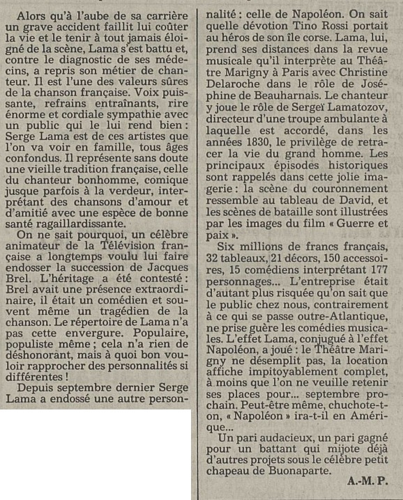 Interview dans le journal Nord Eclair, avant le passage de Serge Lama le 22 janvier 2011 sur la scène du casino barrière de Lille