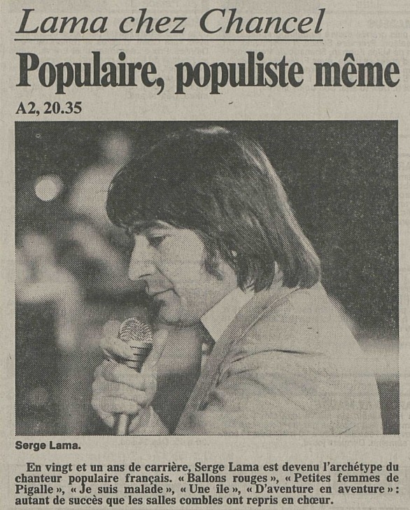Le 21 janvier 1985, Serge Lama est l'invité de Jacques Chancel dans la fameuse émission "Le Grand Echiquier" sur Antenne 2. Le thème de l'émission était : les battants.