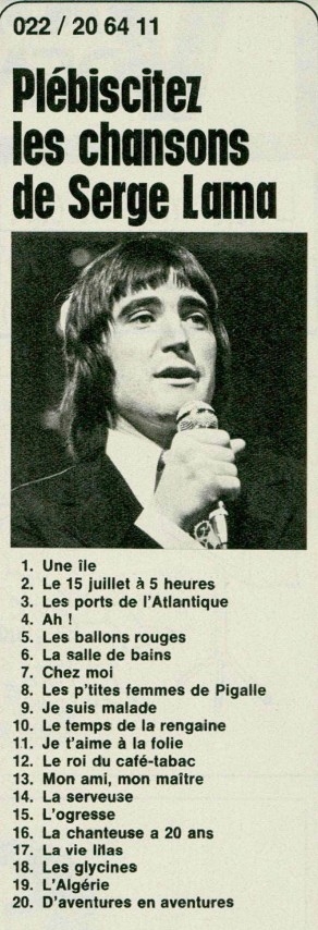 06:50 Publié dans 1974, La presse des années 1970 | Lien permanent | Commentaires (7) | Tags : serge lama, marcel gobineau